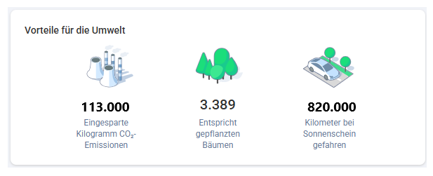 113.000 kg CO2 Einsparung . Dies entspricht 3389 gepflanzten Bäumen oder